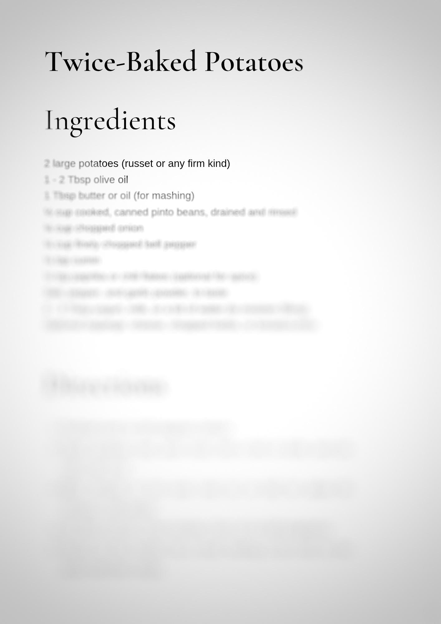 • One recipe per page